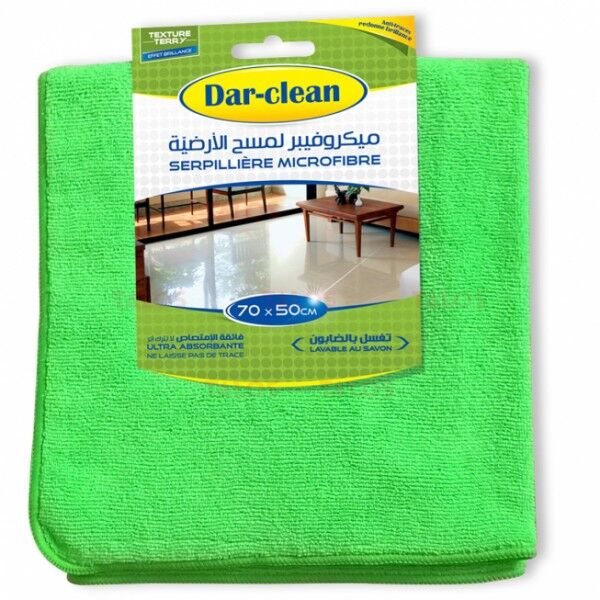 La serpillère en microfibre est idéale pour nettoyer les sols lisses sans laisser de traces. A sec elle attire la poussière et la retient grâce aux propriétés de la microfibre. Elle est lavable aprés chaque utilisation. Dimensions 50×70 cm couleur vert